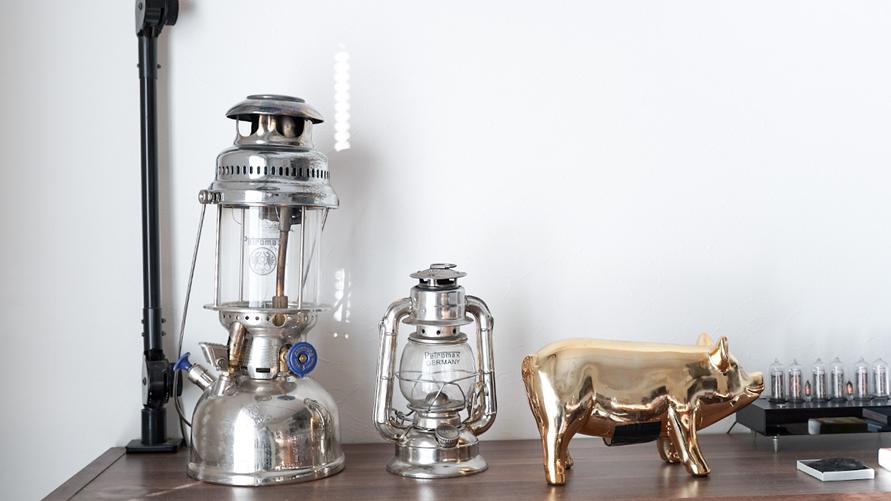 モノも置けて作業もできるワークスペースにしています。ランタンやバーナー、斧のメンテナンスなんかもここでやっちゃえるので合理的。