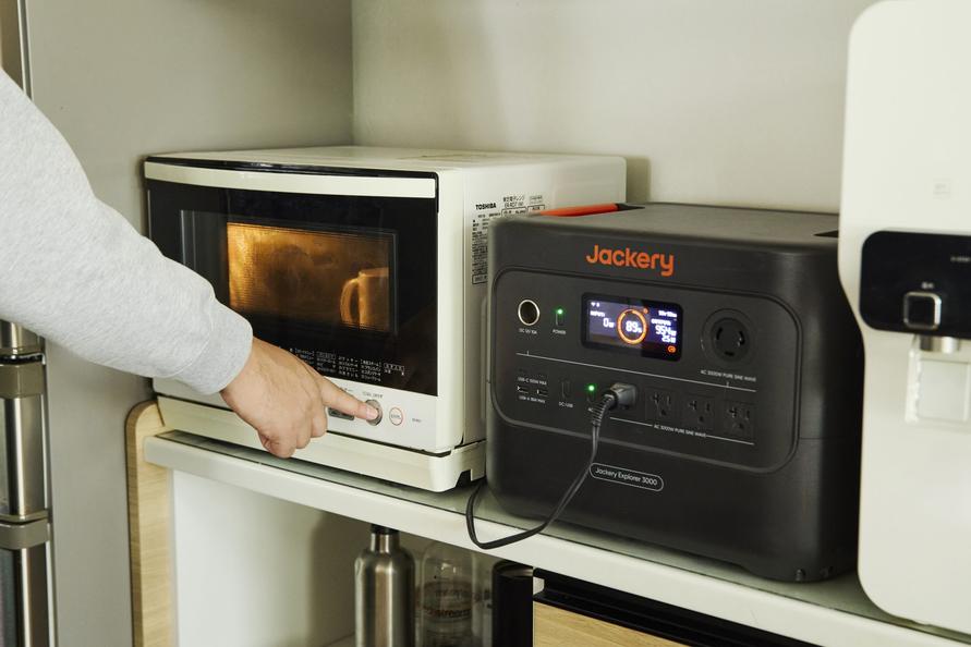 つけっぱなしにする必要がある冷蔵庫や高出力の電子レンジといった家電も動かせて、もしもの災害時から家族の生活を守るための投資としても頼れる大容量の「Jackery 3000 New」。