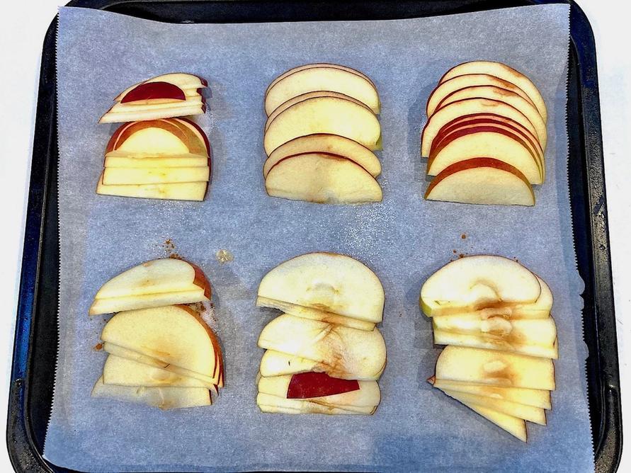 4. 3の上に、りんごを重ねながら並べる。