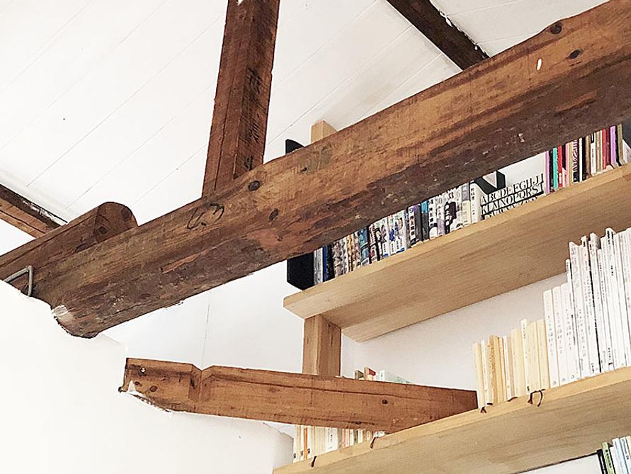 もともとあった古い梁と、白く塗った天井と、本棚の新しい木が融合しているところが萌えポイントです!」