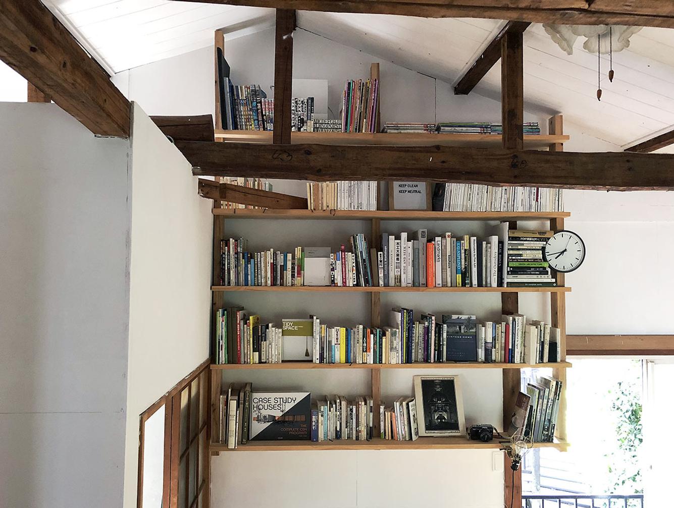 わたしが読書好きなのもありますが、彼が家具や建築をつくる仕事をしているので、必然的に資料としての本が増えて増えて。