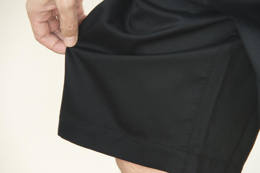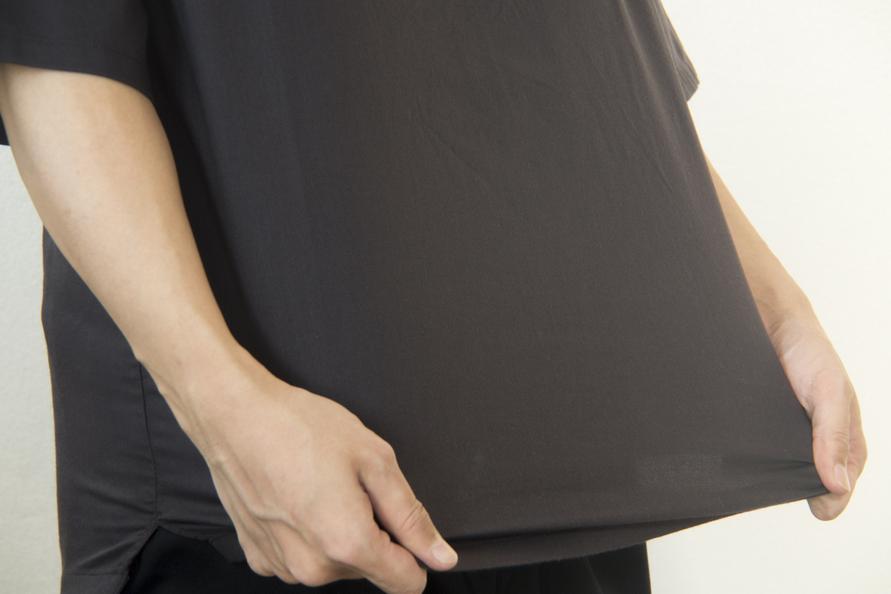 生地のストレッチ性はあまり高くありませんが、身幅が広いので窮屈さはなく快適です。