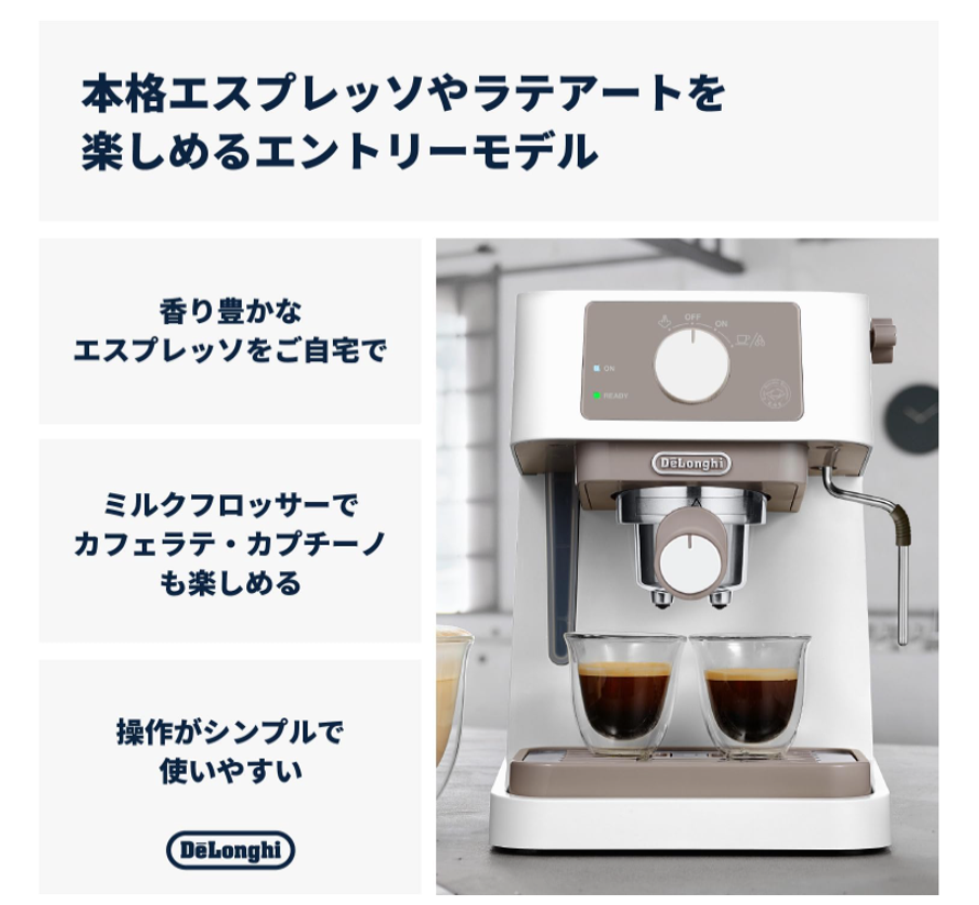 現在、自宅で本格カプチーノ&ラテアートが楽しめるデロンギのエスプレッソメーカー「スティローザ EC235J-W」がお得に登場しています。