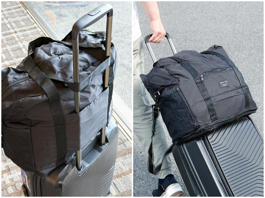 そんな旅行の「あるある」を解消してくれたのが、3COINSで見つけた「キャリーオン折りたたみバッグ」。