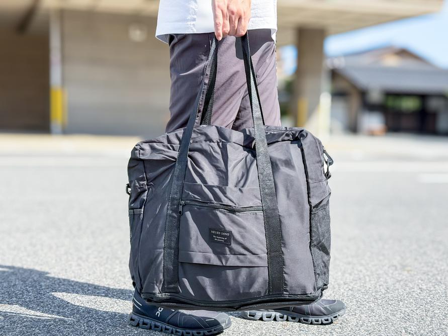 見た目はシンプルな手提げバッグですが、実は驚くほどコンパクトに収納でき、3タイプの使い方ができるんです。