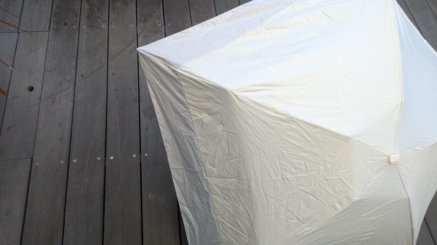 形は変わっているけど目立つほどでもなく、カラーもシンプル。初めて日傘を持つ人も、きっと抵抗なく持てると思います。
