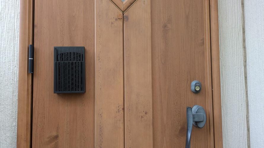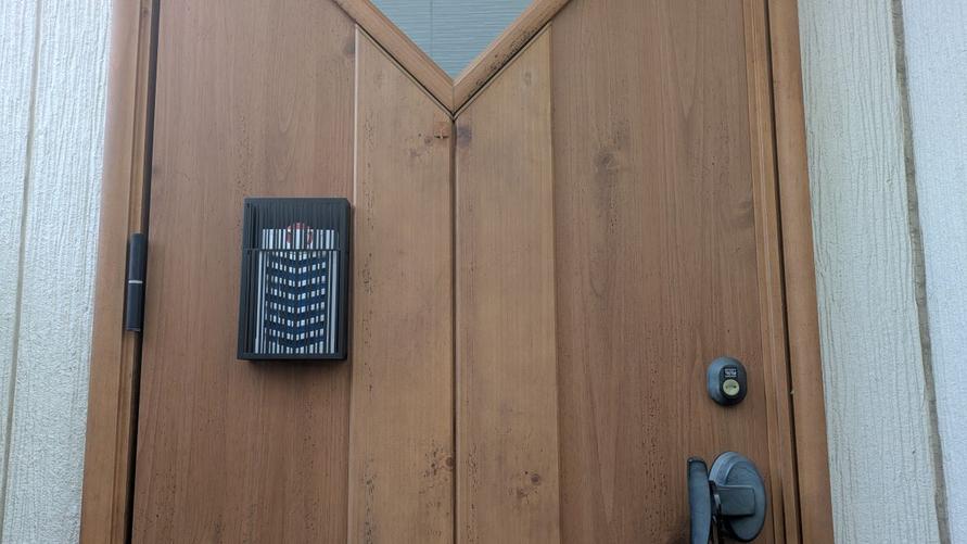 実際に玄関ドアに付けてみると、ただ虫よけプレートをさげているよりも断然かっこいい!