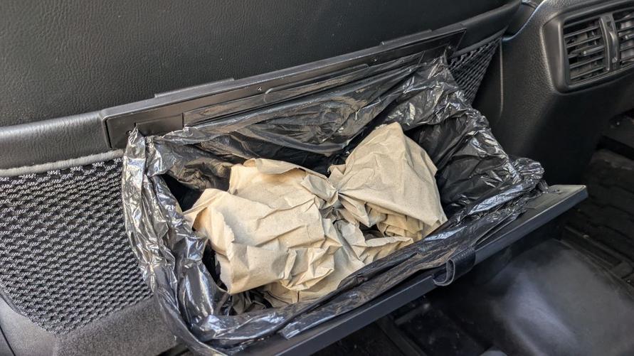 ドライブ1回分のゴミが収まるかどうかは人数やゴミの出方によって違いがあると思いますが、一般的な車内に置くような小さめのゴミ箱並みにはちゃんと入るように思います。