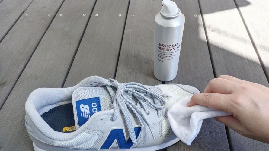 あとは乾いた布で泡をふき取ったら自然乾燥させるだけ。水洗いよりもかなり速く乾くので、数十分後には余裕で履いて出かけられました。