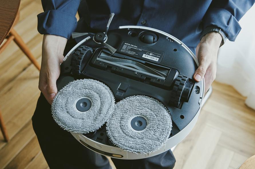 また、先ほど「ゴミはベースステーションで自動回収する」と紹介しましたが、モップもベースステーション内で自動洗浄してくれます。ゴミの回収・モップの洗浄をどちらもお任せできるのはありがたい!