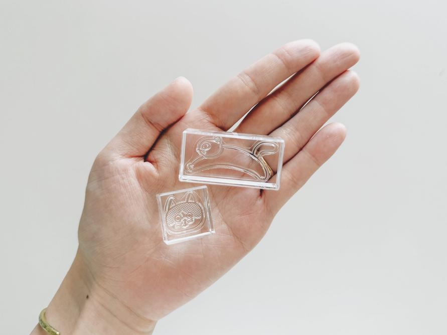 キングジムの「氷印」は、すべてのパーツが透明で作られたスタンプ。