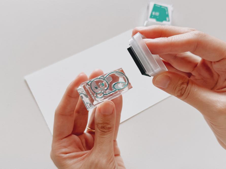 透明スタンプの大きな特徴は、上から押す位置が見えること。
