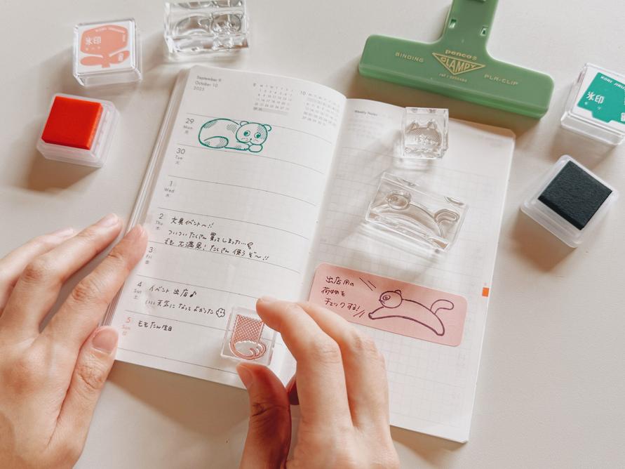 スタンプパッド自体は乾きにくい仕様になっているので、何度も押す作品を作ったり、手帳を書きながらスタンプを押したり……。