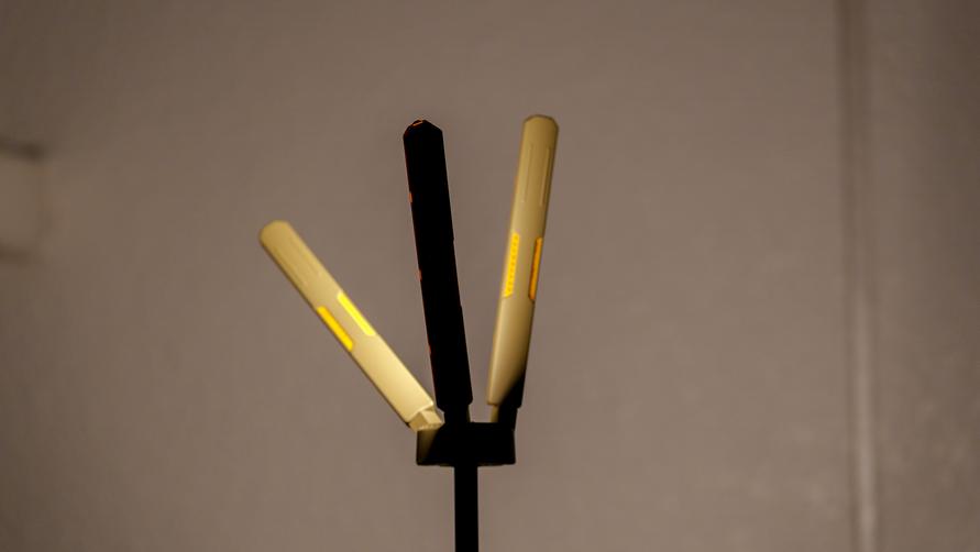 まず、デザインに触れておくと、「CL04」は照明器具というより“変形するガジェット”に近い存在感。折りたたまれた姿は、モバイルプロジェクターのような筒型です。