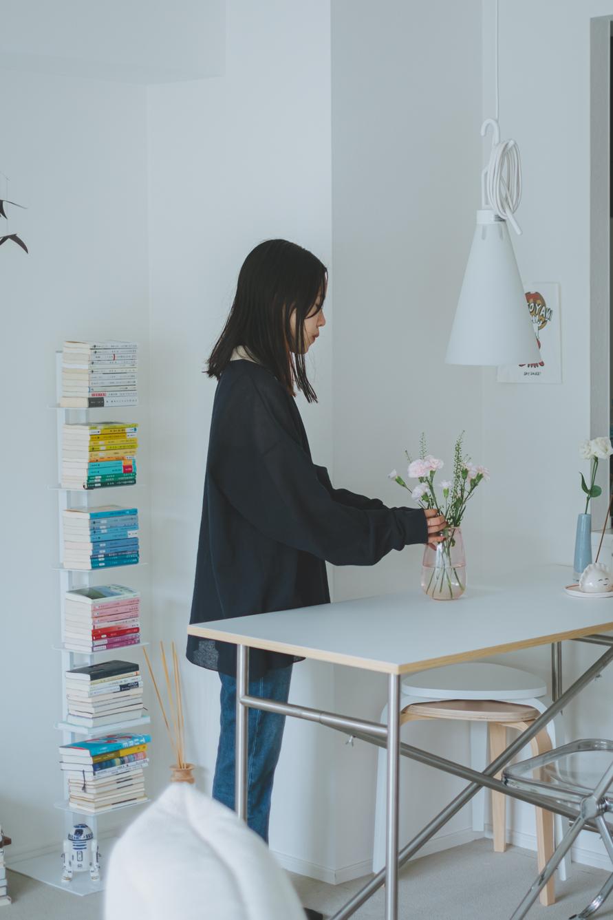 好きなものに囲まれた暮らしは、自分を幸せにしてくれるとも話してくれたmaasaさん。余白のある白の空間は、これからの無数の楽しみ方を予感させるキャンバスのようにも見えました。