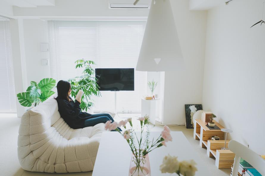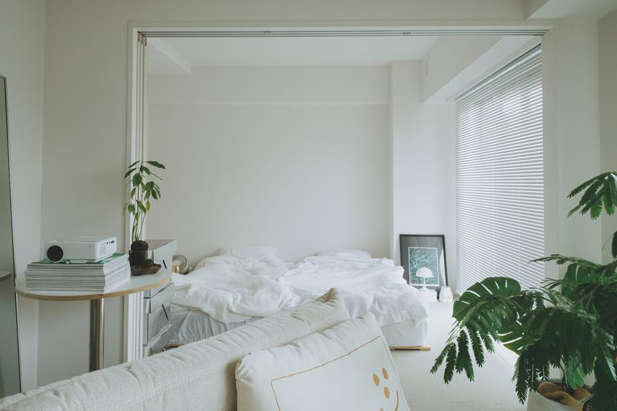 白が中心の空間で、植物の緑がアクセントに。これまでお花を飾ることはあっても、植物は置いていなかったと話すmaasaさんの、新しい部屋の楽しみ方になっていました。