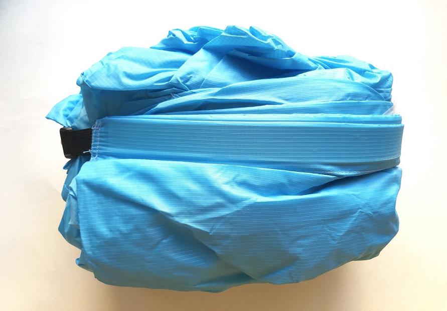 一見プールバッグのような見た目の収納袋。その中に折りたたまれた本体が入っている、Sableのエアソファ!