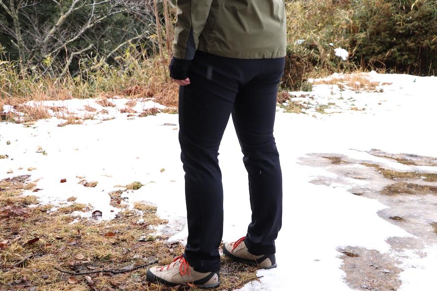 裾部分がタイトで足捌きがよく、登山やクライミング等のアクティブな場面でも充分に使えますね!