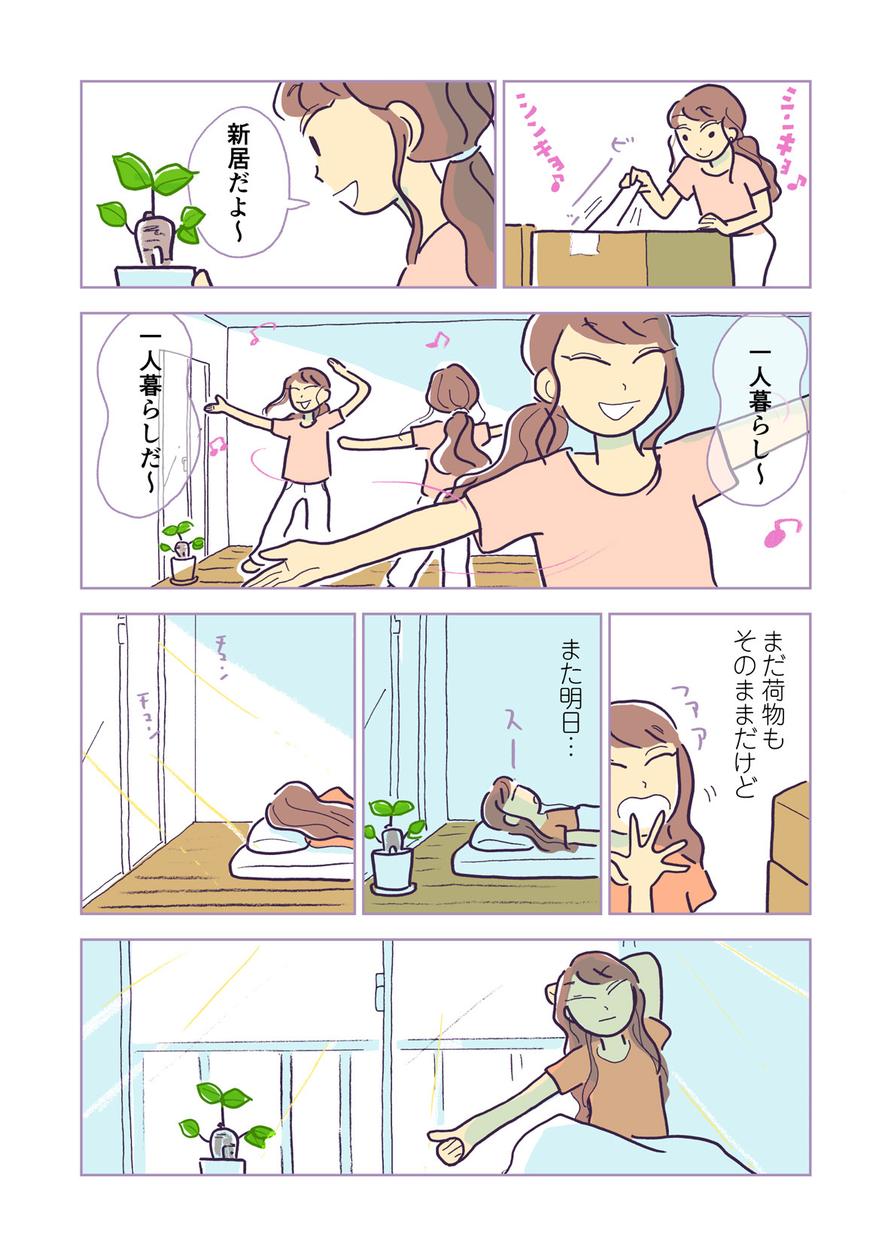 第1話は、一人暮らしに憧れるユーリの視点と、彼女が育てている植物「ガジュ丸」の視点でそれぞれ描きます。