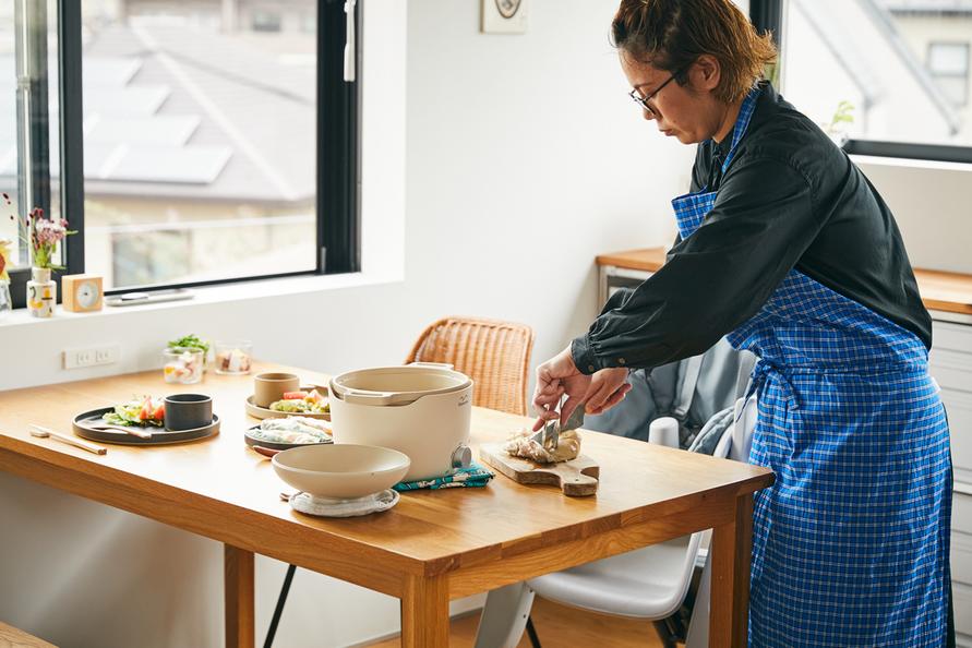 コンセントさえあればどこでも使えるので、キッチンに張り付いていなくても「ながら」調理ができるのもうれしいポイント。千恵さんはグリルパンをテーブルに置いて、一太郎くんの相手をしたり、パソコンで仕事をしたりしながら調理することもあるそうです。