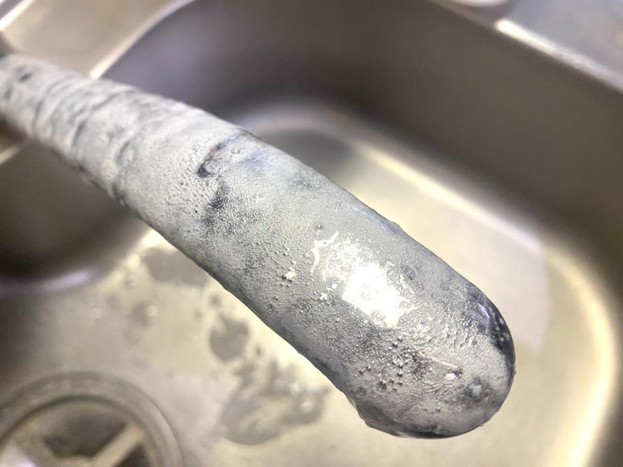 蛇口には水垢がこびりついています。