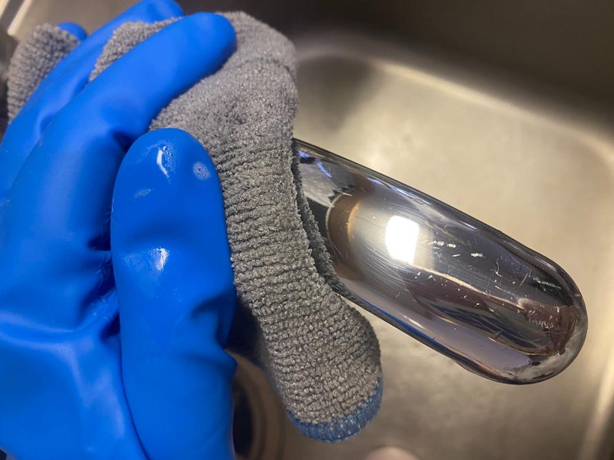 蛇口のように、水で流すのが難しい場所は濡れた布で拭きましょう。