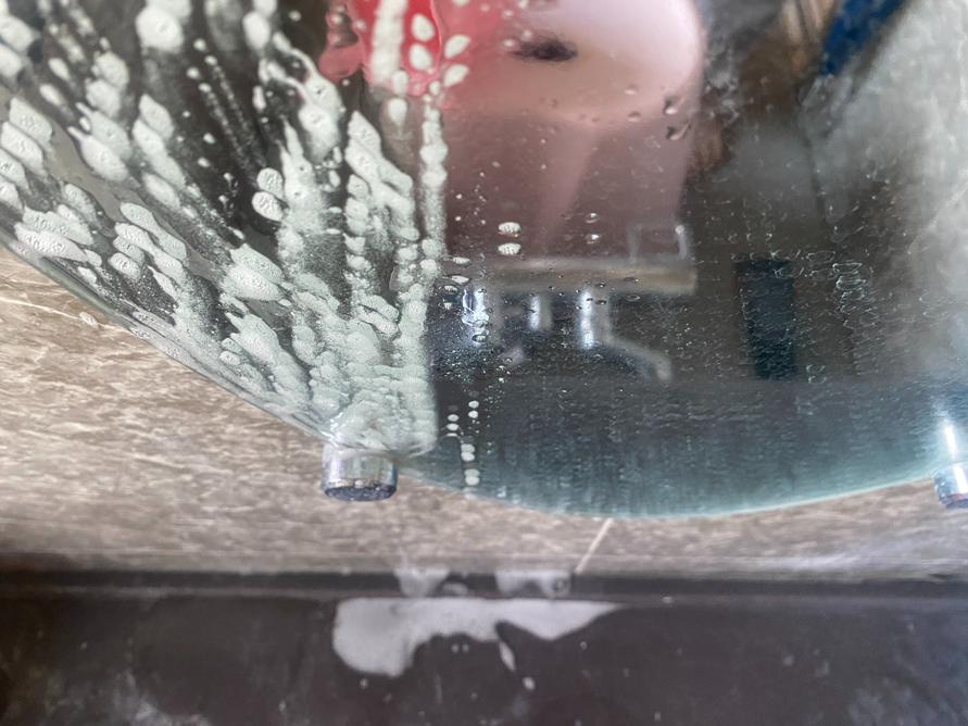 水アカクレンジングを吹きかけてから時間を置いてシャワーで流すと……。
