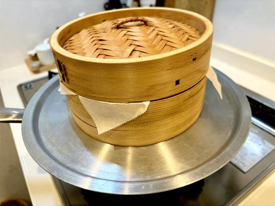 せいろを何段かを重ねて何品かを1度に調理することもできますが、今回は1段で完結する料理です。