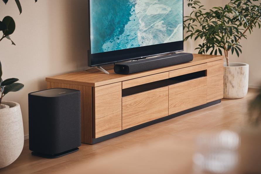 16cm径の重低音ドライバーをパワフルな100Wで駆動する本機はサウンドバー同様にコンパクトで、設置場所を選ばないのも嬉しいポイントです。