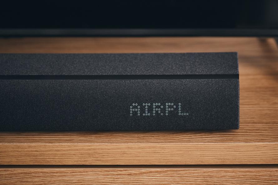 サウンドバー本体にはドットタイプのディスプレイが搭載されていて、インテリア性を担保しながらも視認性良好。滑らかに流れるディスプレイ表示が、離れた位置から操作するときもしっかりと確認できます。
