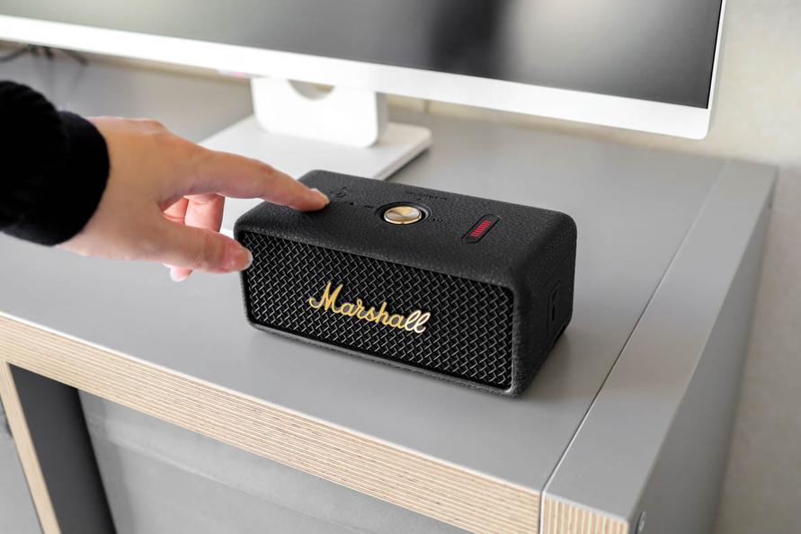「Emberton III」は、そんなMarshallのギターアンプをまるでミニチュアにしたかのよう。ブランドの“らしさ”をギュッと凝縮した印象的なデザインで、ひときわ目を引きます。