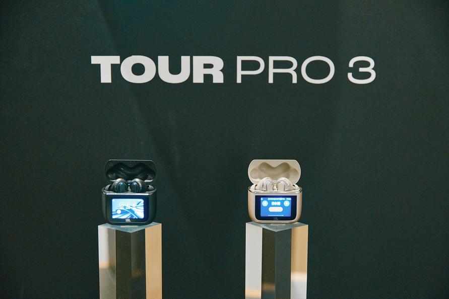 今回紹介された新作のなかでひときわ注目を集めていたのが、JBLのハイエンド完全ワイヤレスイヤホン「TOUR PRO 3」。