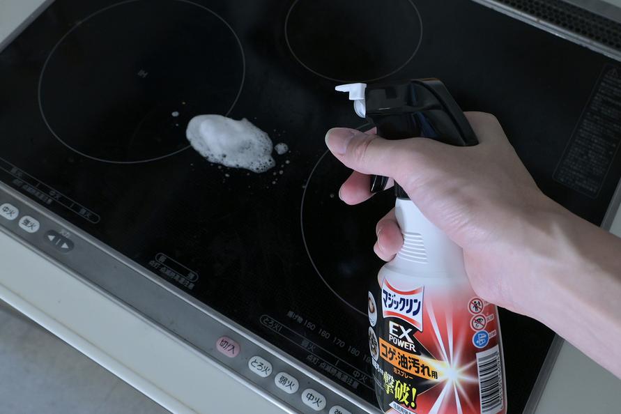 ということで早速、油汚れでギトギトのIHコンロに使ってみます。