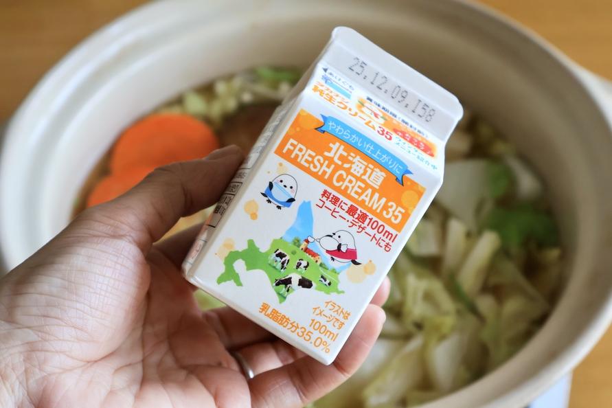 結論から言いましょう。白湯っぽいスープをつくるために使うのは、生クリームです。