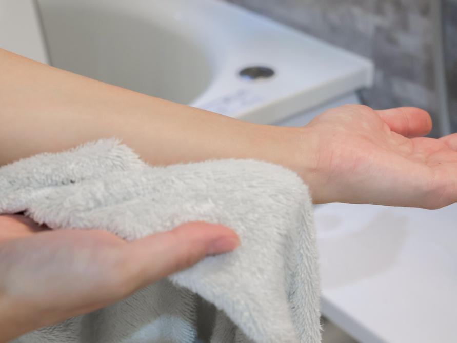拭いてしまうともったいない気もするのですが、タオルで拭いても取れにくい処方らしく、わたしは遠慮なく拭いてしまっています。