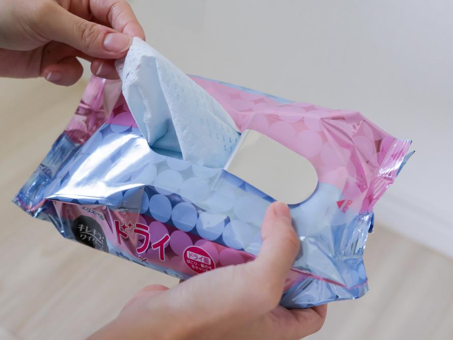 このシート、片方はウェットなのにもう片方はサラサラのドライの不思議なシート。