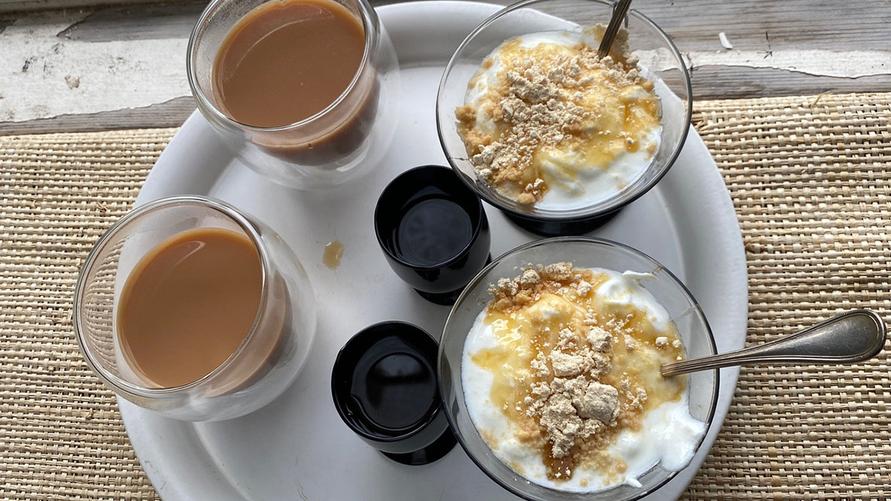きな粉ヨーグルト、ミルクティ、今日の元気。「気温低し」という天気予報だが……意外に暖かい。食物庫に隙間ができたので、晴れ晴れした気分で買い物ツアーへと出かける。