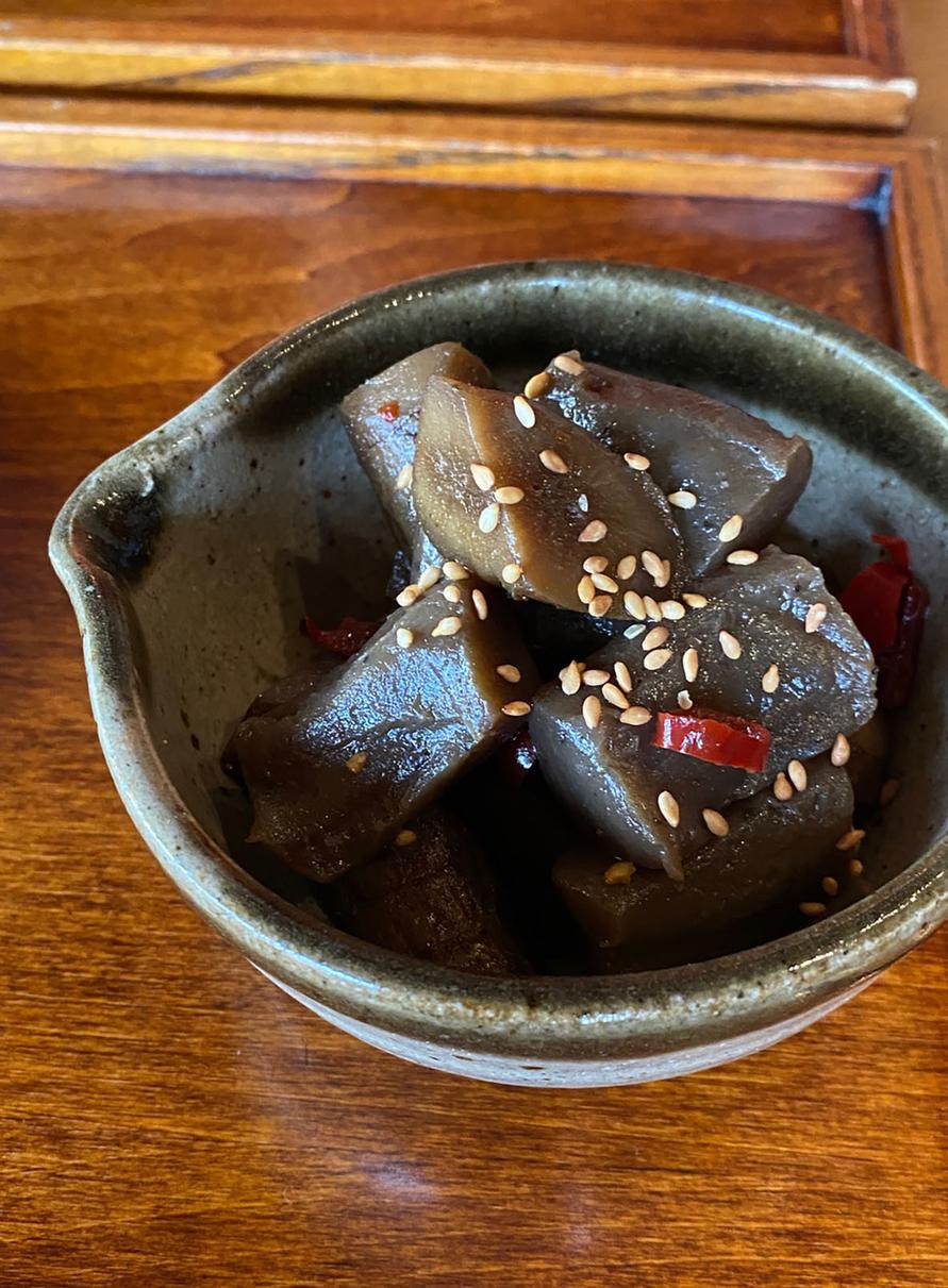 買い物帰りに桶ヤに立ち寄り、こんにゃくとゴボウの煮物(うまい!)、