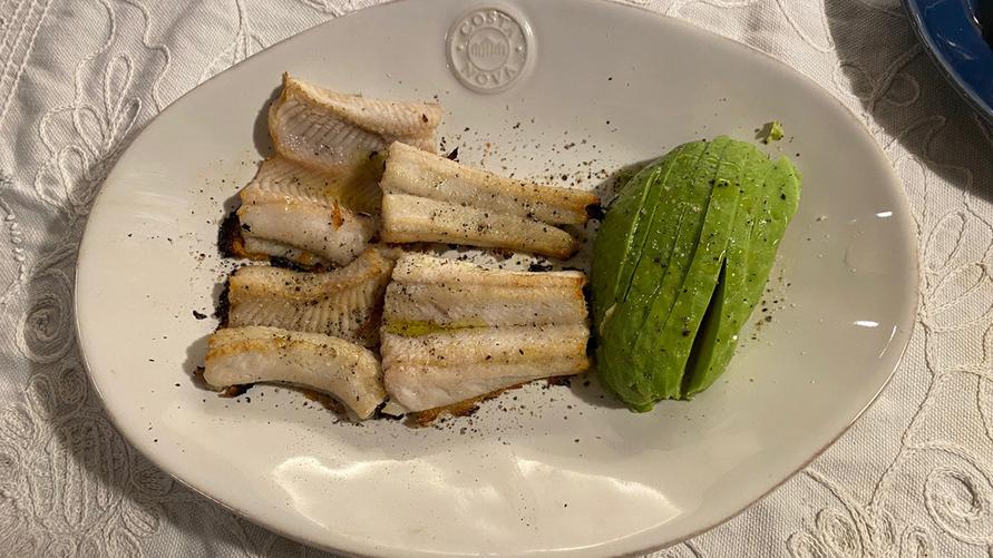 穴子の塩焼きとアボカド(オリーブオイルをかけて食べる)、