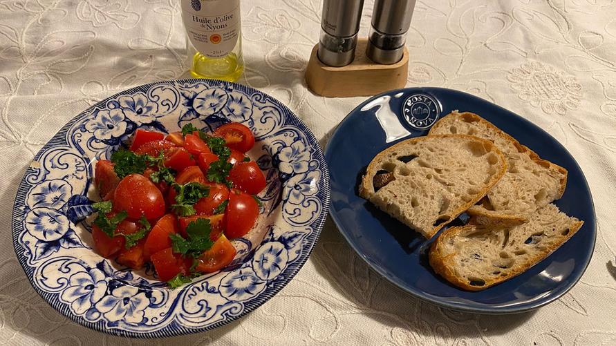 - 1.5%の塩を入れた湯で茹でたパスタをAに入れて混ぜる。