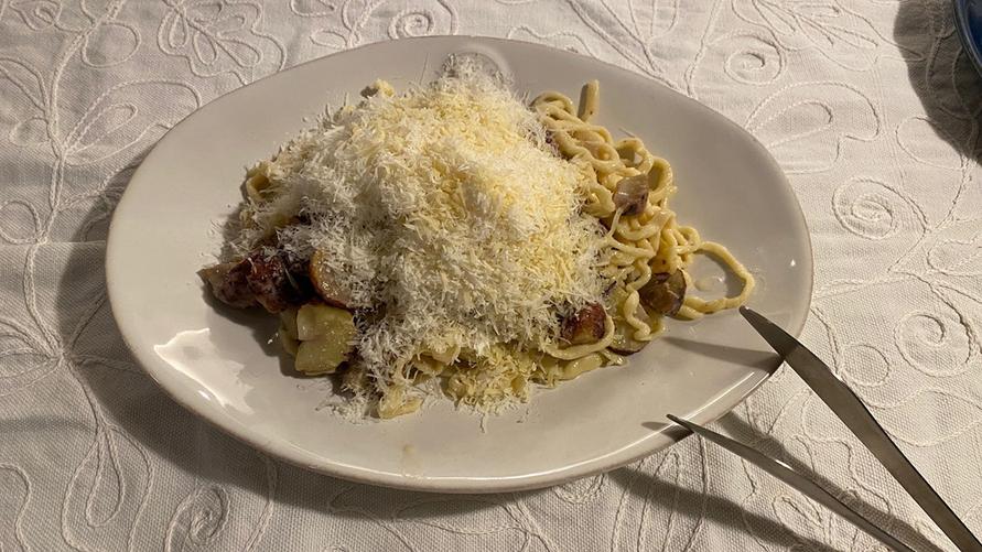 栗入り・チーズパスタ。パスタがうまい、めちゃうまい。Dancyuに載っていたRegalo小倉さんのレシピ(栗は入っていないベーシックなシンプルレシピ)。
