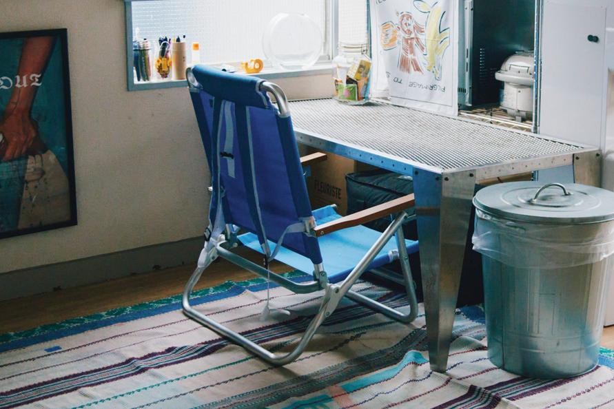 そのうちの1つがキャンプや山登りなどのアウトドアアクティビティです。キャンプ用の道具を日常使いすることもあるという言葉のとおり、部屋にはアウトドアのギアがちらほら。