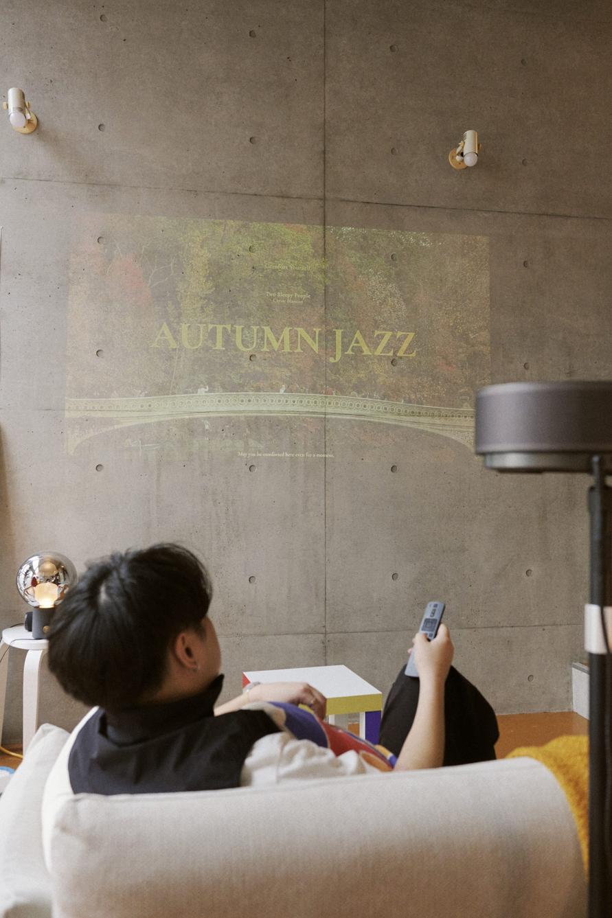 夜になると照明も相まって、部屋がまるで、プライベートシネマのような空間になるのだとか。友人がよく遊びにくるというのも頷けます。