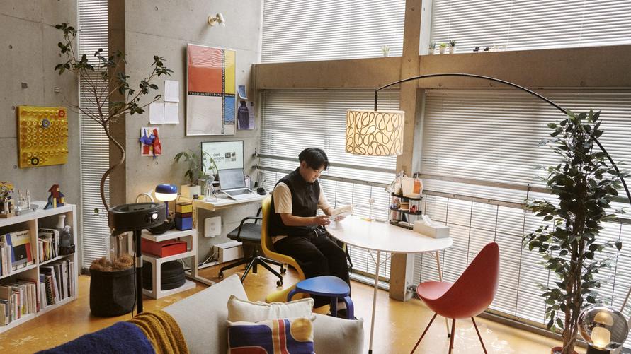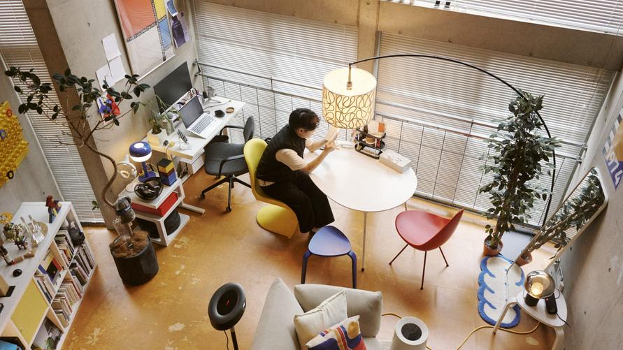 BAUHAUSのエッセンスをふんだんに取り入れ、レゴや積み木など、子どものような遊び心を忘れずに一人暮らしを楽しんでいます。