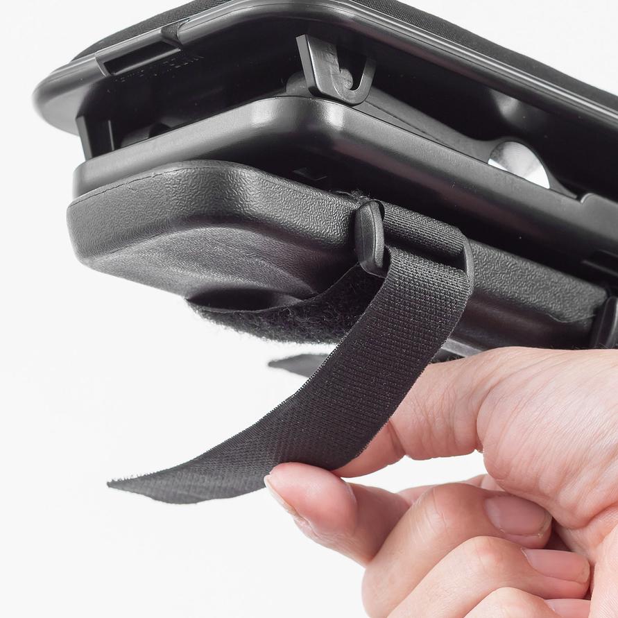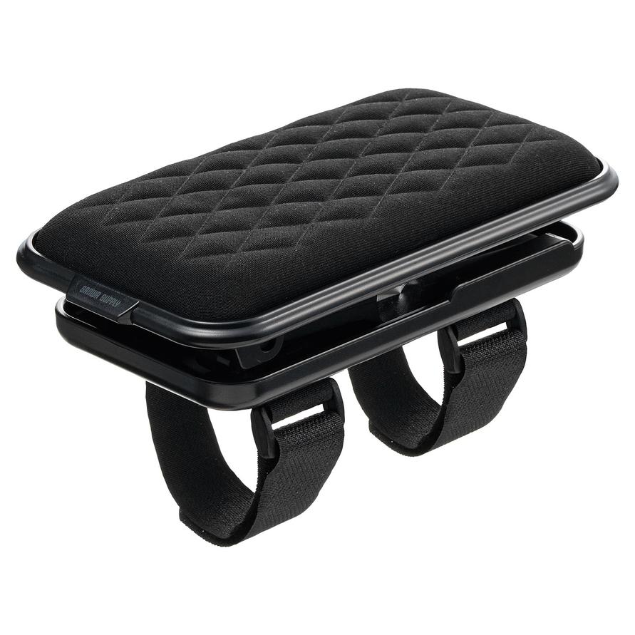 2つのベルトについた面ファスナーで固定するから、さまざまなタイプの肘掛けに対応できるのがメリット。