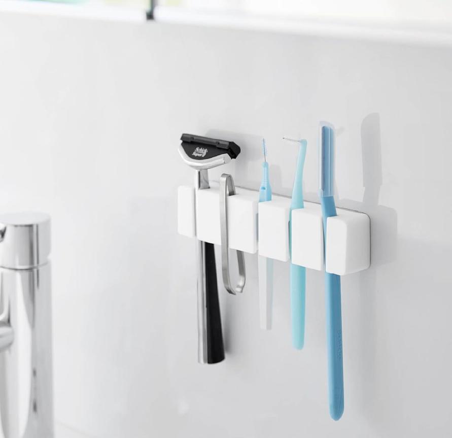 ちなみに、耐荷量は全体で500gで、歯ブラシだけでなく、カミソリや歯ブラシ粉なども挟んで収納することができるのだそう。