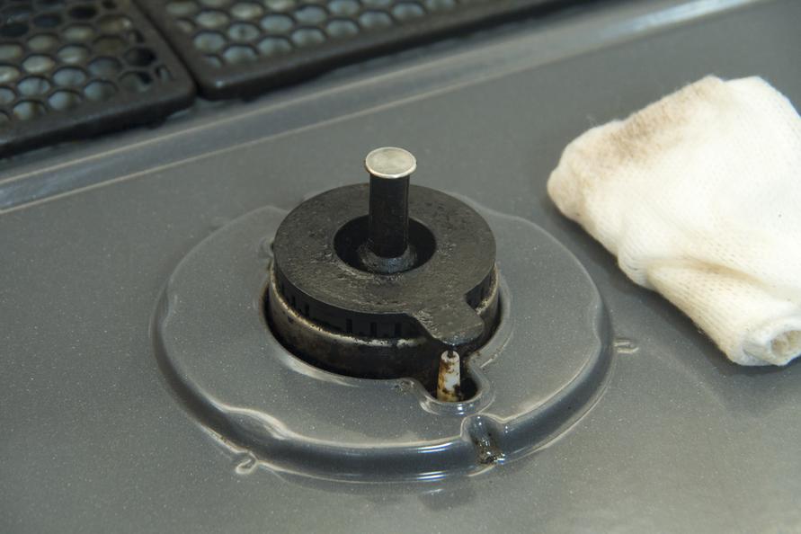 ギトギトしたコンロも「油汚れクリーナー」で拭いてあげると。