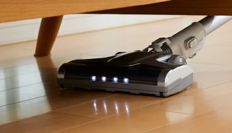 運転音は73dBと静かなのもGOOD。ヘッド部分にLEDライトを搭載し、暗い場所や隙間のゴミも見逃しません。