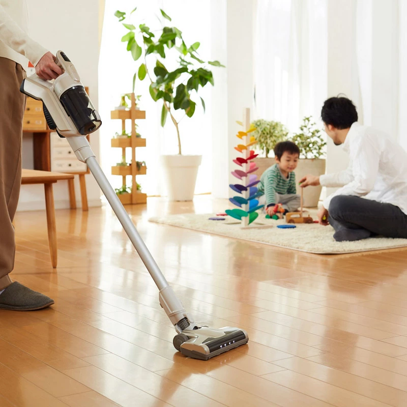 フロアブラシやダストカップは丸洗いできるのでいつでも衛生的ですよ。