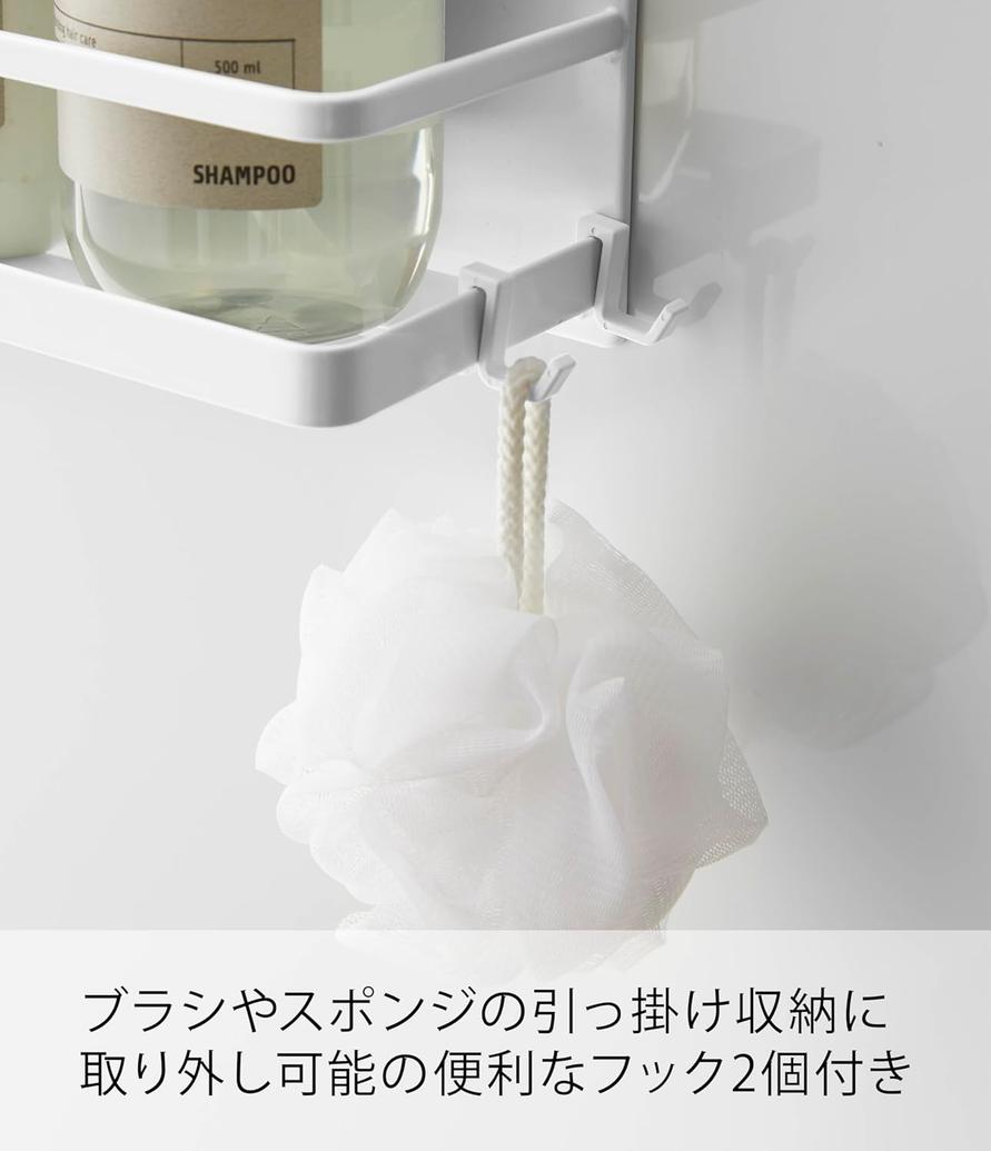 ブラシやスポンジなどを掛けておくのに便利な取り外し可能なフックが2個付いているのも嬉しいポイント。山崎実業らしいシンプルデザインで、どんな浴室にもなじみやすいのも魅力です。